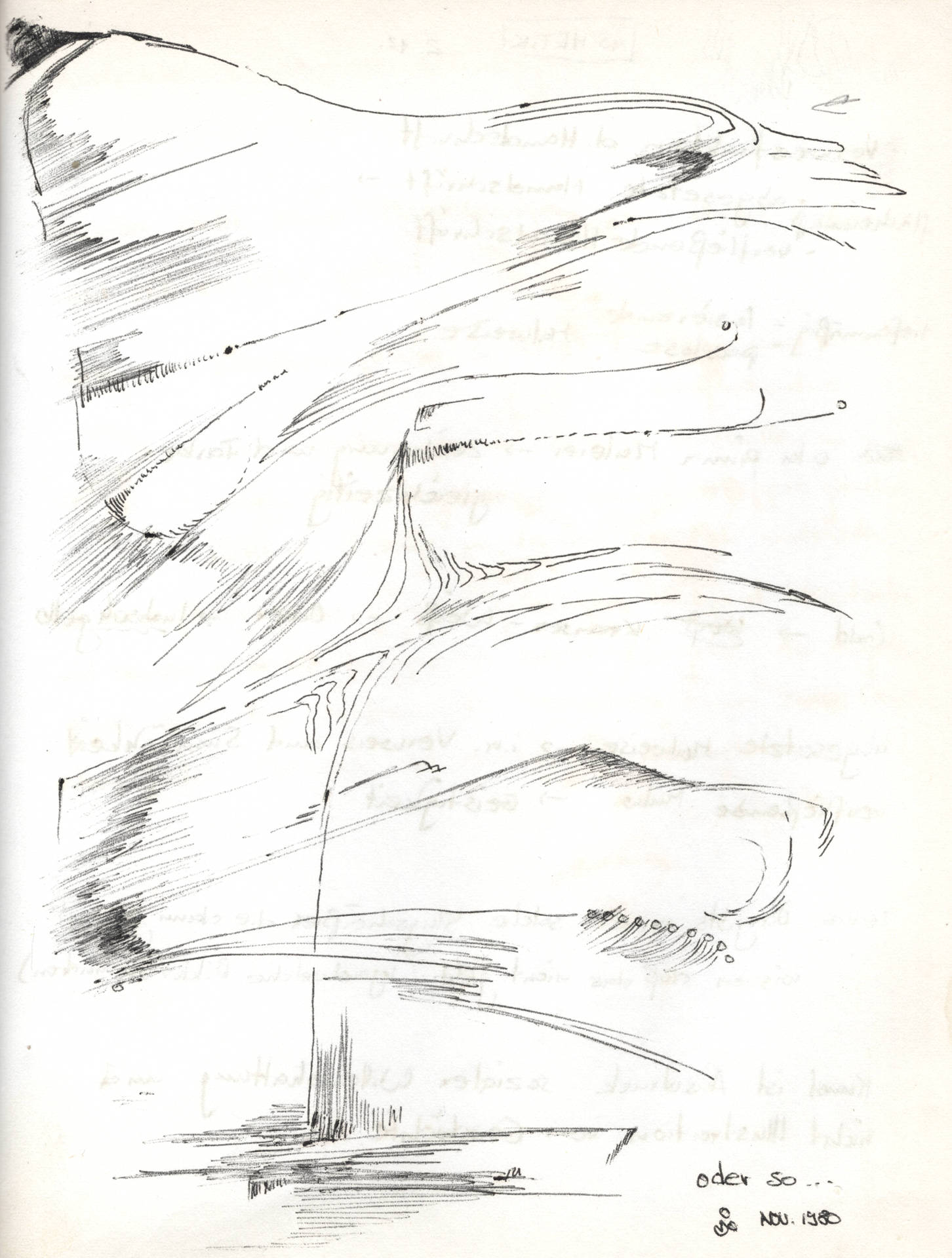 Gezeichnet habe ich schon als Kind, wie man das eben so macht, zum Zeitvertreib oder als Ausdruck, dessen was ich gut fand. Langweilige Unterrichtsstunden, Sitzungen und Ähnliches haben dafür gesorgt, dass sich die Formen weiter entwickelt haben. Formale Spielereien machen mir immer noch Spaß, aber das Alles hat Zeit gebraucht, um sich zu entwickeln. Diese Sachen sind im Laufe der Jahrzehnte entstanden. Das "5 vor12" Bild ist über fünfzig Jahre alt.